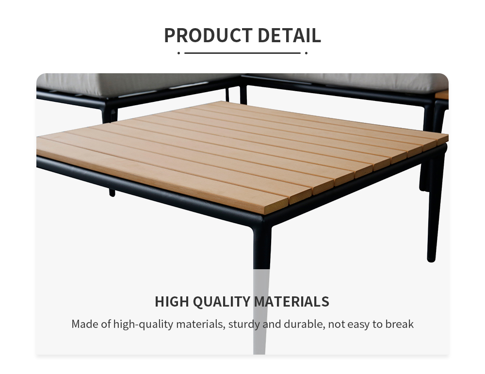 This sofa set consists of modular sofas and coffee table.The modular sofa's frame are made of ultra-light aluminum which can be moved easlier and used for long time in outdoor.