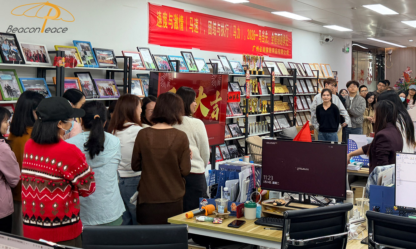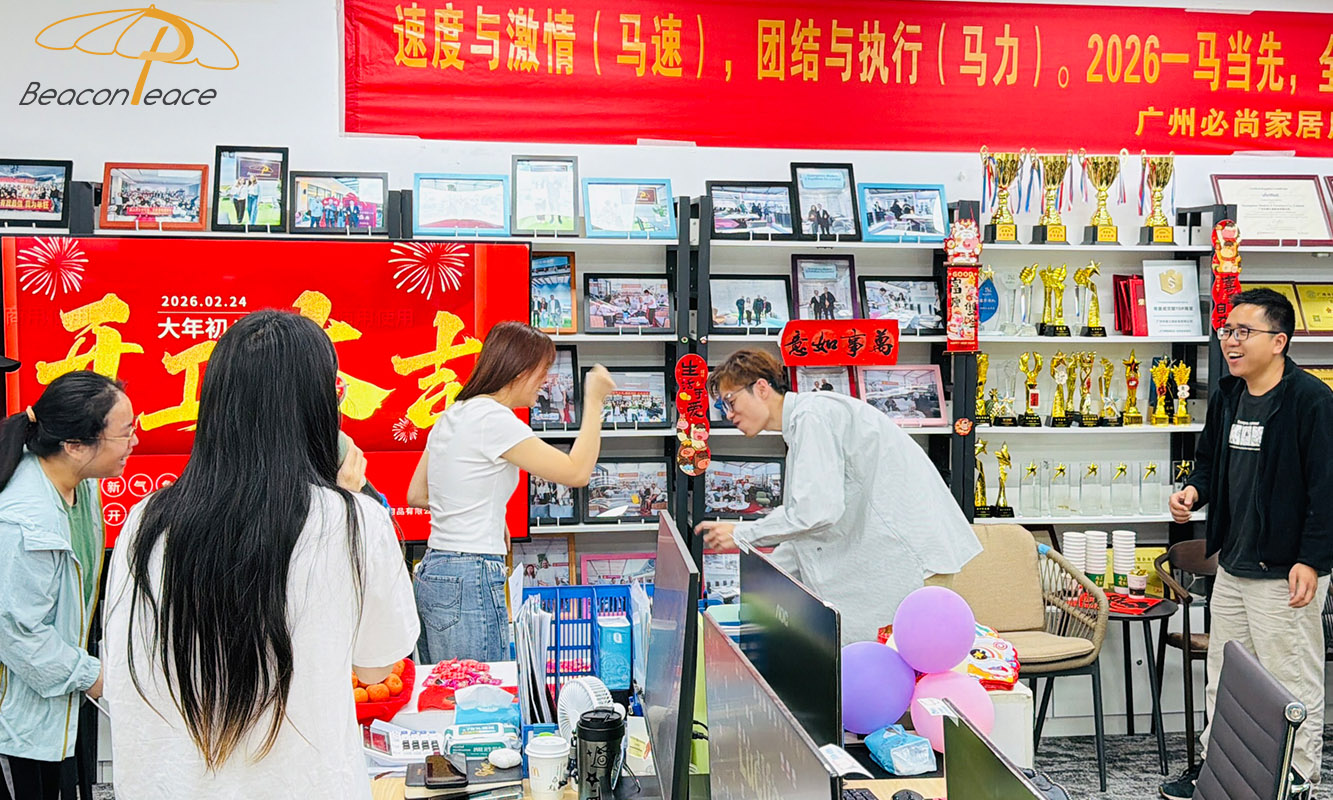On February 24, 2026, Beacon Peace Outdoor Furniture Company ushered in a vibrant and hopeful workday. All employees gathered to solemnly hold the 2026 Spring Festival Opening Ceremony, officially launching a new journey of hard work in the Year of the Horse with a dignified, enthusiastic, and joyful atmosphere. This created a strong New Year's atmosphere and injected everyone with positive energy.