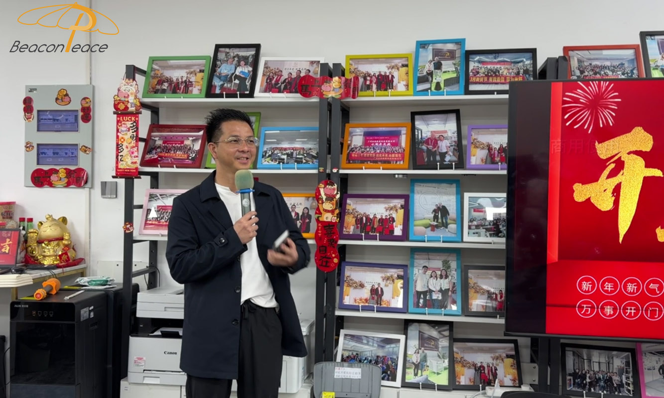 Next, Sam, General Manager of Beacon Peace, delivered a speech at the opening ceremony, extending sincere New Year's greetings to all employees and offering congratulations on the start of the new year. After reviewing the company's outstanding achievements and hard work over the past year, Mr. Sam thanked all employees for their hard work. At the same time, Mr. Sam outlined a clear direction and set specific goals for development in 2026, officially announcing the full launch of the new year's work.