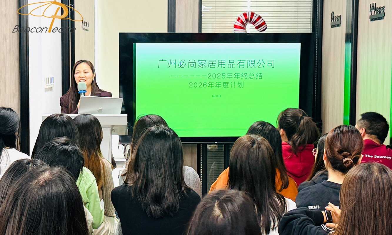 The conference ended successfully with warm applause. At the end of the meeting, Sam also sent his sincere blessings to all customers, thanked them for their continued support and trust in Beacon Peace outdoor furniture, and looked forward to continuing to work together to achieve great results in the new year. I hope everyone will be healthy, happy and prosperous in 2026!