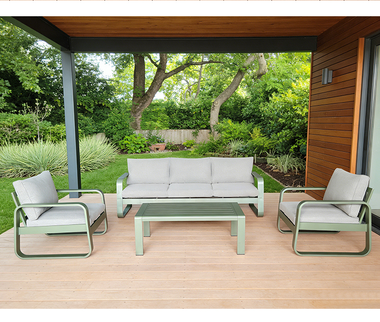 The BP7991 outdoor sofa features a high-quality aluminum alloy frame treated with a refined brushed finish. This process endows it with both a premium metallic aesthetic and exceptional resistance to rust and corrosion, ensuring a structure that is simultaneously sturdy and lightweight—capable of withstanding the rigors of outdoor exposure to sun and rain. Paired with highly resilient, waterproof seat and back cushions, the sofa offers a plush, comfortable seating experience that is both water-resistant and easy to clean, requiring no tedious maintenance. Its minimalist linear design complements a variety of outdoor settings—such as courtyards and patios—striking a perfect balance between visual appeal and practical functionality.