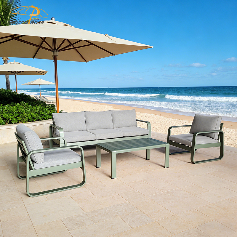 Sofas: Powder Coated Aluminum Frame eat Cushions:T10cm Coffee Table: Full Aluminum |