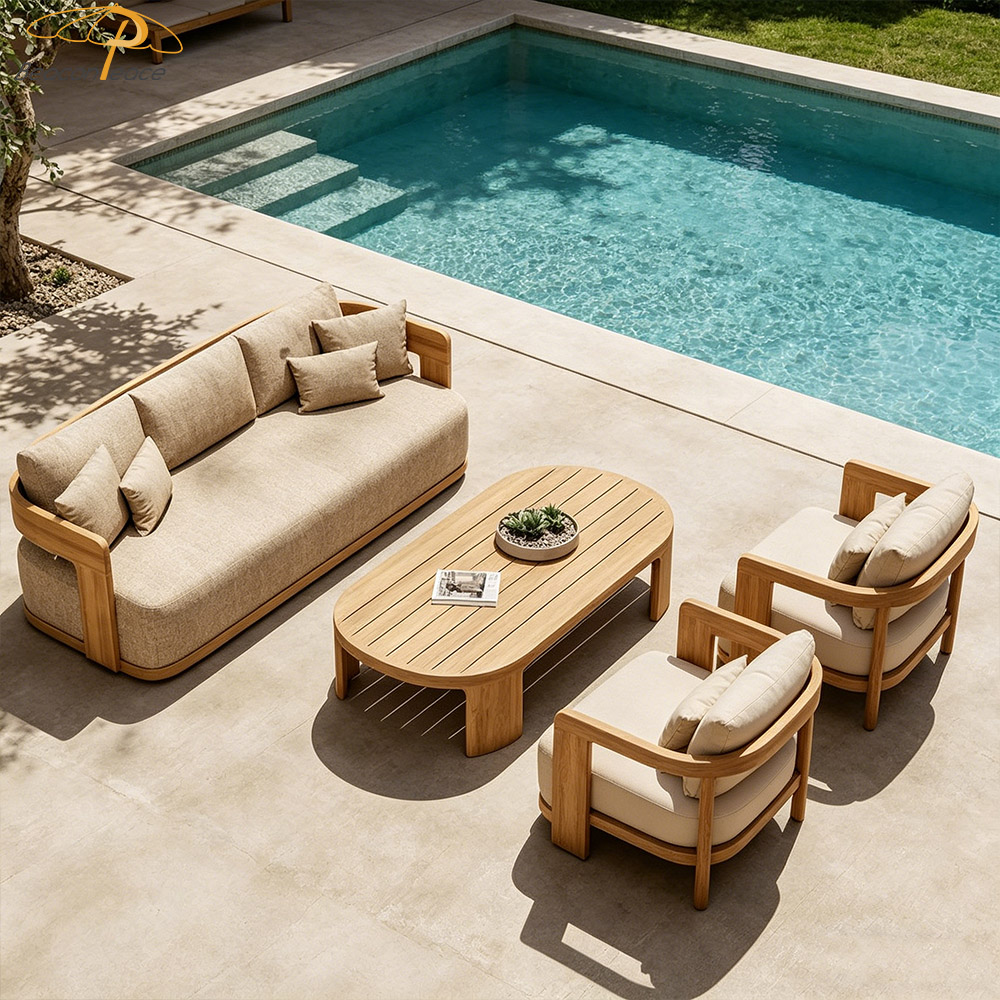 NEW-4101 Modern Luxury Wooden Outdoor Furniture Resort Garden Patio Teak Wood Sofa Set for Courtyard |