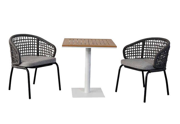 Aluminum Frame with Rope Weaving Chair + Plastic Wood Desk Top Metal Base TableLead Time :
