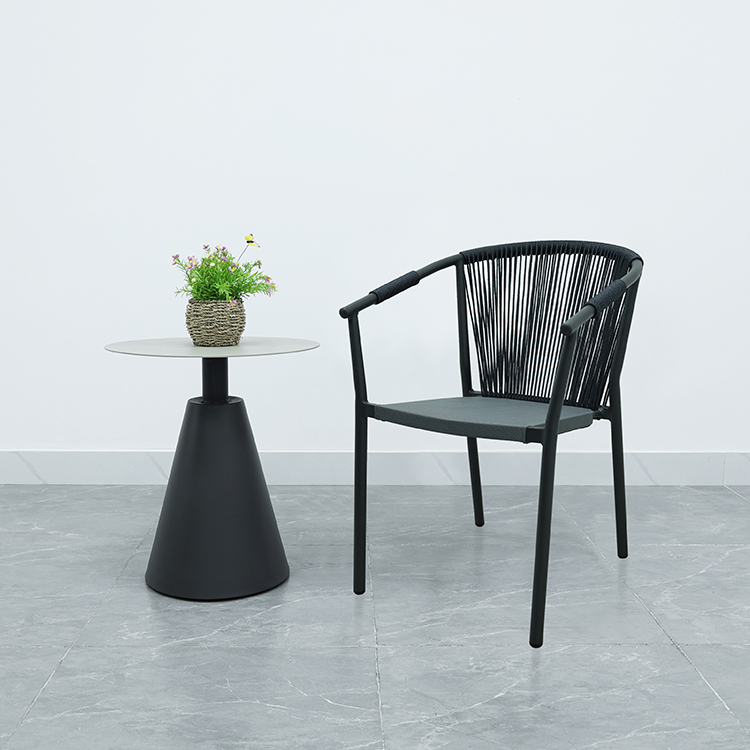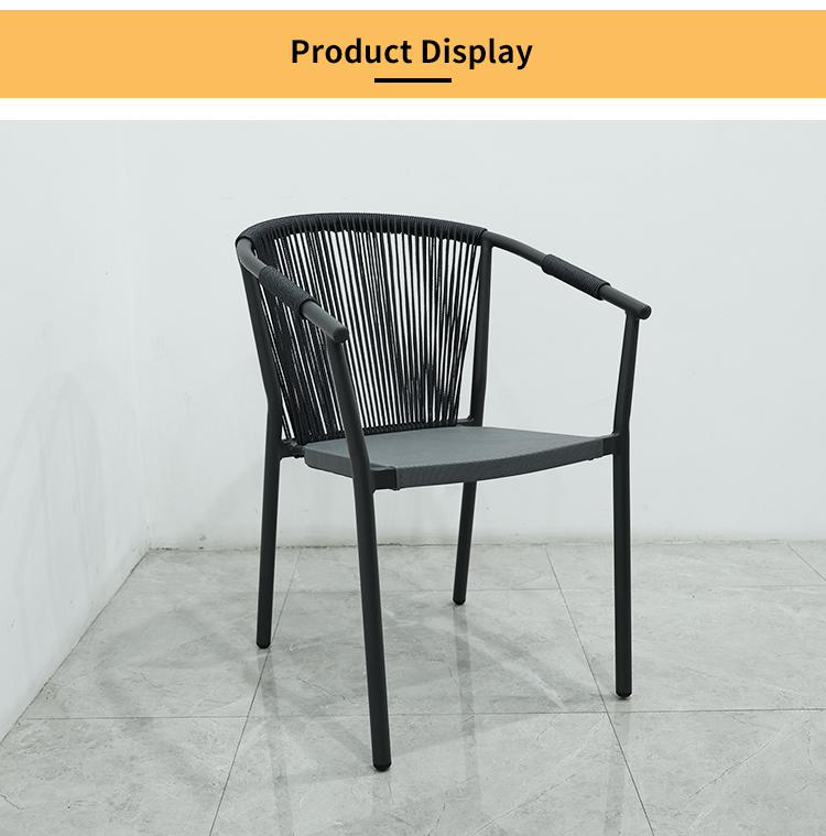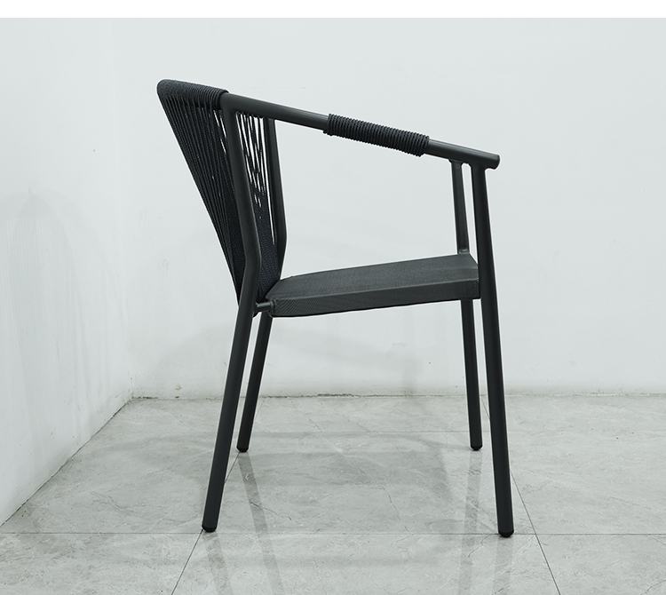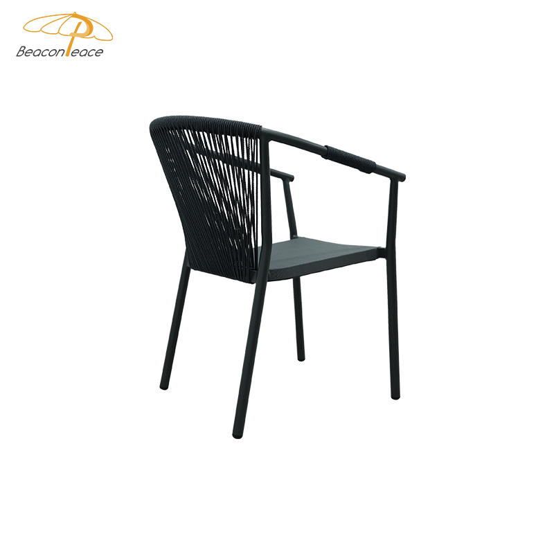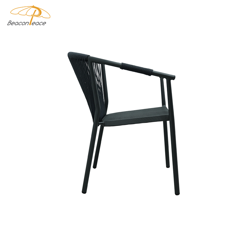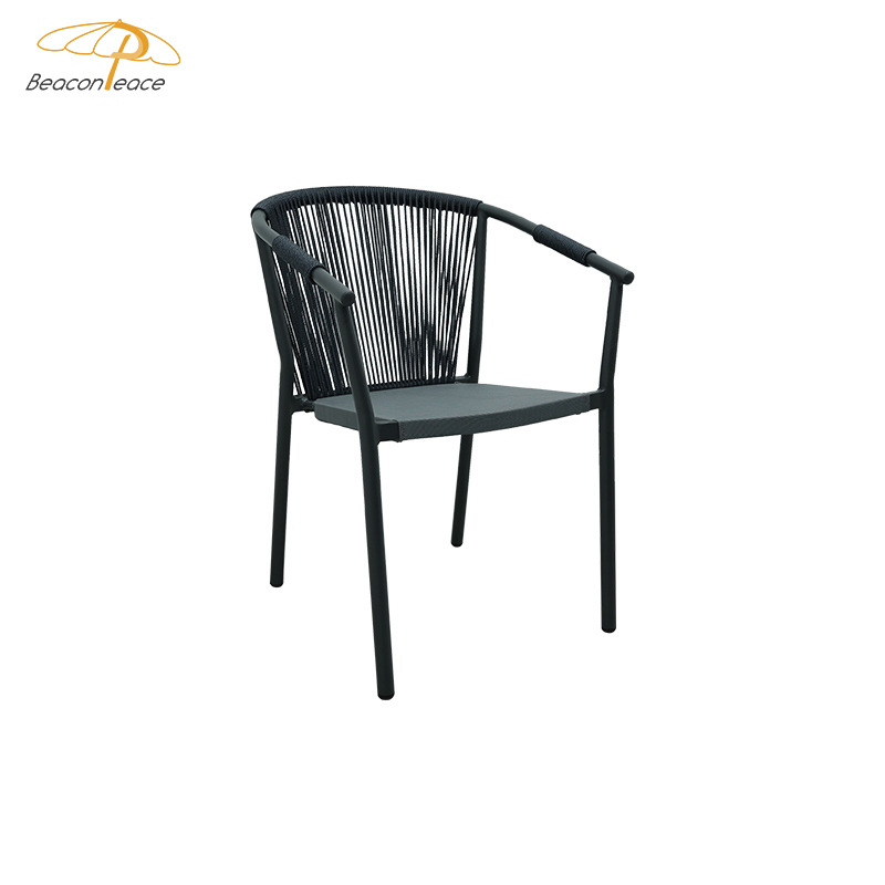 BP2910 Nordic Leisure Outdoor Aluminium Furniture Rope Woven Stackable Patio Garden Dining Chair With Armrest |