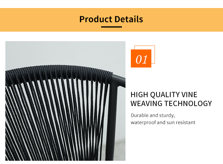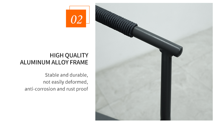 This outdoor dining chair features a sturdy aluminum frame with delicate braided rope details, adding a touch of natural elegance to your patio, balcony, or terrace. The robust aluminum alloy material is not only lightweight but also corrosion-resistant and weather-resistant, ensuring its lasting beauty and stability in various outdoor environments. The chair's design includes added armrests for enhanced comfort and support, providing extra comfort whether you're relaxing for a nap or enjoying a meal. The high-quality waterproof seat cushion offers unparalleled comfort; the waterproof material not only prevents water penetration and is easy to clean but also keeps you dry and comfortable for extended periods.