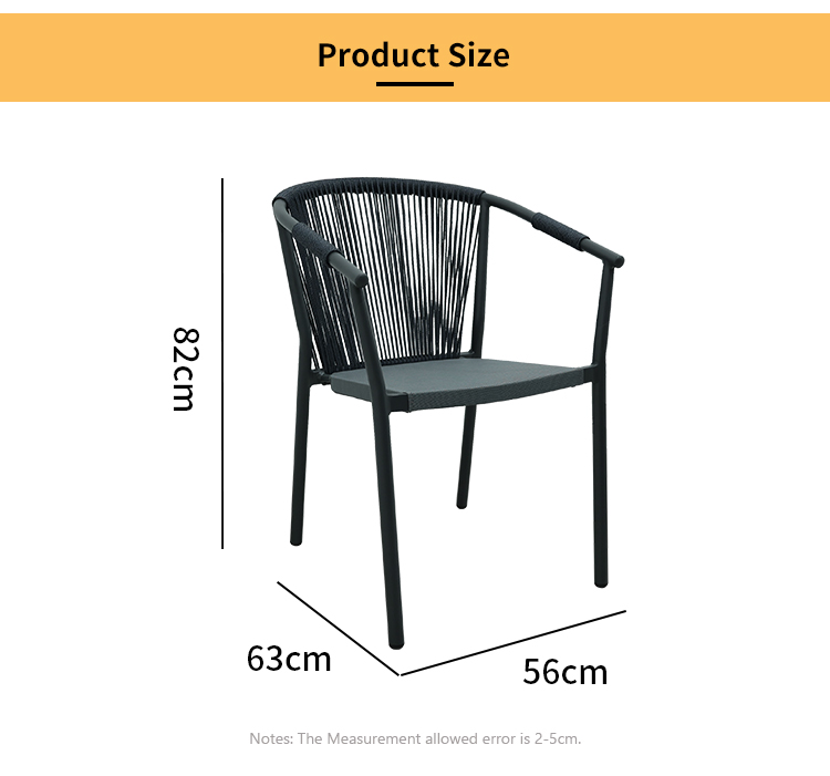 T/T, LC, OA is also available.Nordic Leisure Outdoor Aluminium Furniture Rope Woven Stackable Patio Garden Dining Chair With Armrest