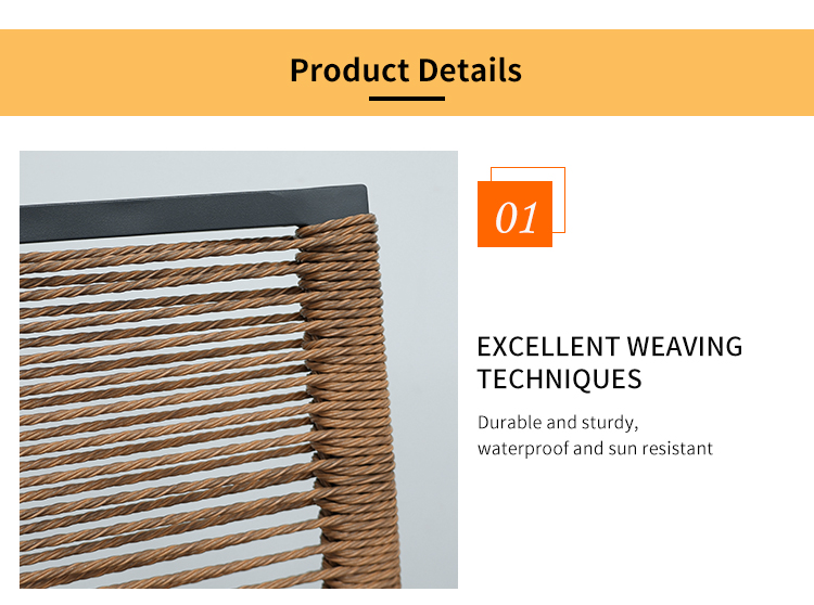 Table:aluminum frame with powder coated finish Chair:aluminum frame+outdoor rope weavingLead Time :