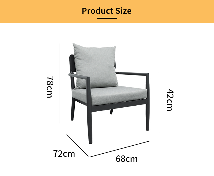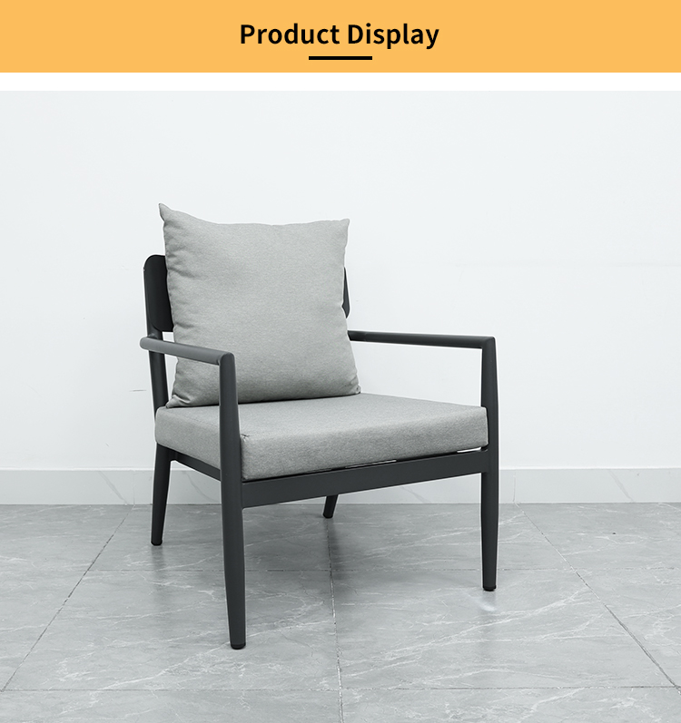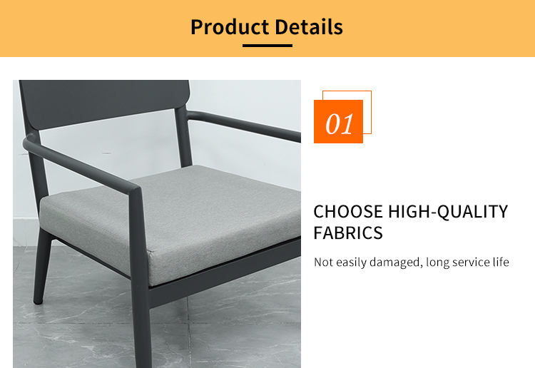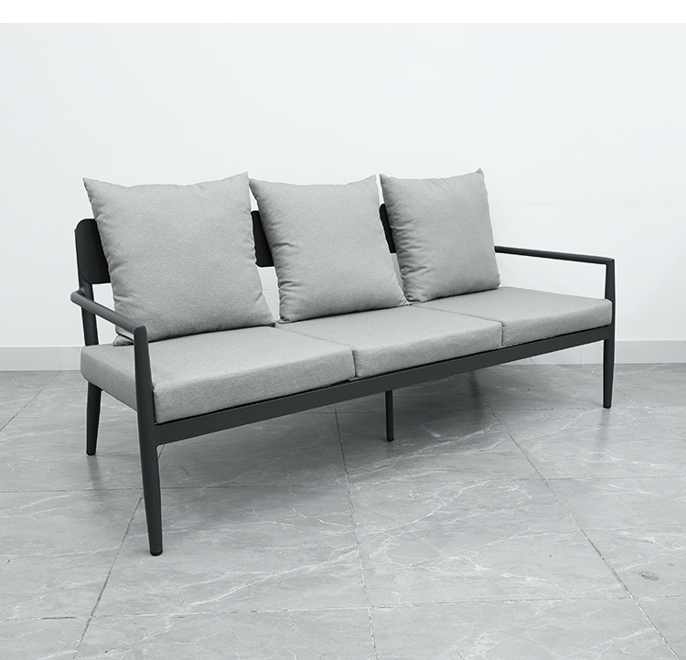 This aluminum alloy sofa is made with a high-quality aluminum alloy frame, making it lightweight and easy to move, facilitating flexible space arrangement. It also boasts excellent corrosion resistance, making it suitable for various outdoor environments. Furthermore, it features soft and thick cushions that provide excellent back support and a comfortable seating experience, ideal for extended use. The cushions are made of waterproof material, ensuring they remain dry even in rainy weather. The combination of two single sofas and one three-seater sofa offers flexibility to adapt to different occasions and needs.