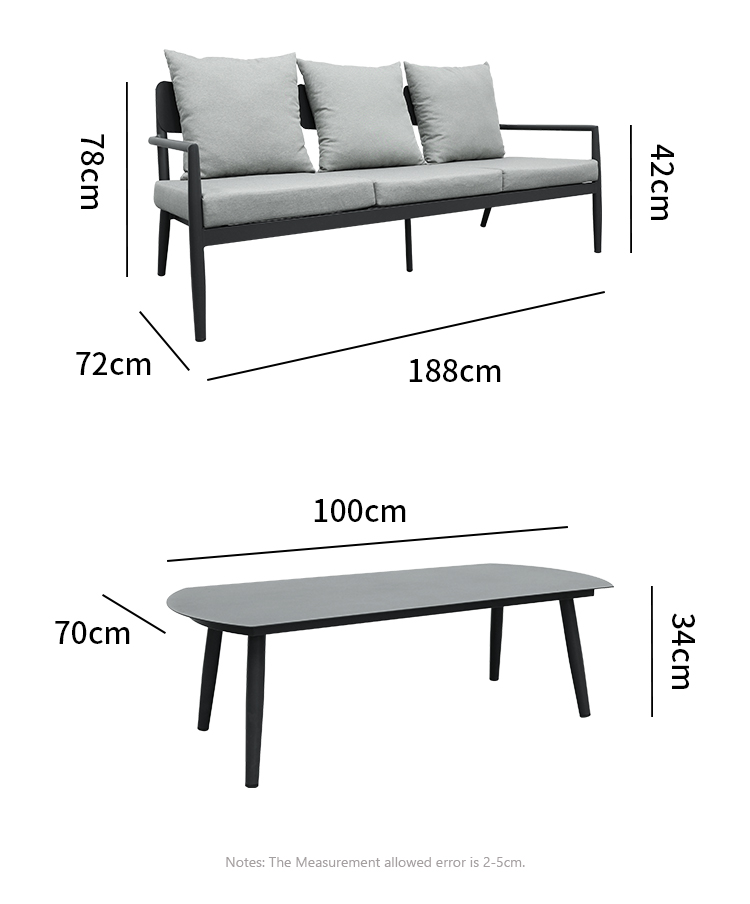 Sofa:Frame:Powder Coated Finished Alum Tube Table: T4mm Full AluminumLead Time :