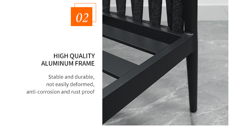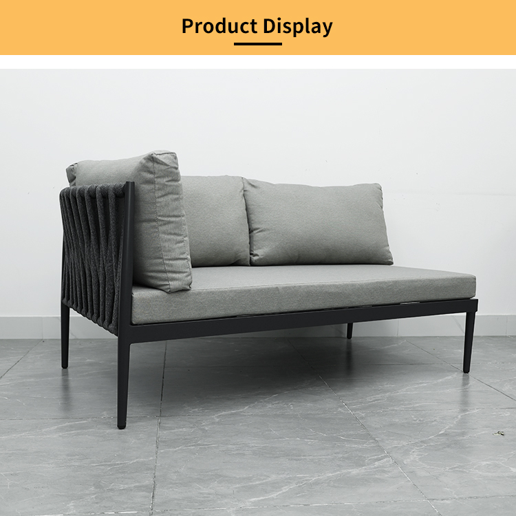 This outdoor L-shaped sofa features a sturdy and durable aluminum alloy frame, designed specifically for outdoor environments. The exterior is adorned with exquisite braided rope details, adding a touch of natural and refined beauty. Equipped with waterproof cushions, it stays comfortable and dry whether in bright sunshine or light rain. The flexible L-shaped design adapts to various outdoor space needs, perfectly creating a spacious and stylish relaxation corner. Whether sharing time with family and friends or enjoying leisurely moments in the garden or on the terrace, this sofa is an ideal choice.