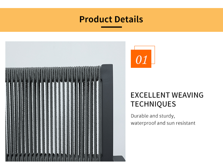 Table:aluminum frame with powder coated finish Chair:aluminum frame+outdoor rope weaving+waterproof cushionLead Time :