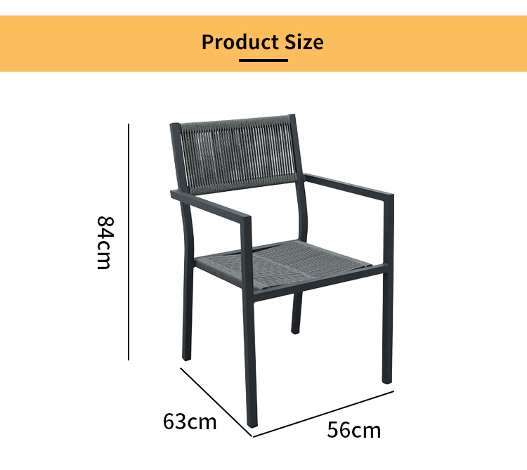 Table:aluminum frame with powder coated finish Chair:aluminum frame+outdoor rope weaving+waterproof cushion |